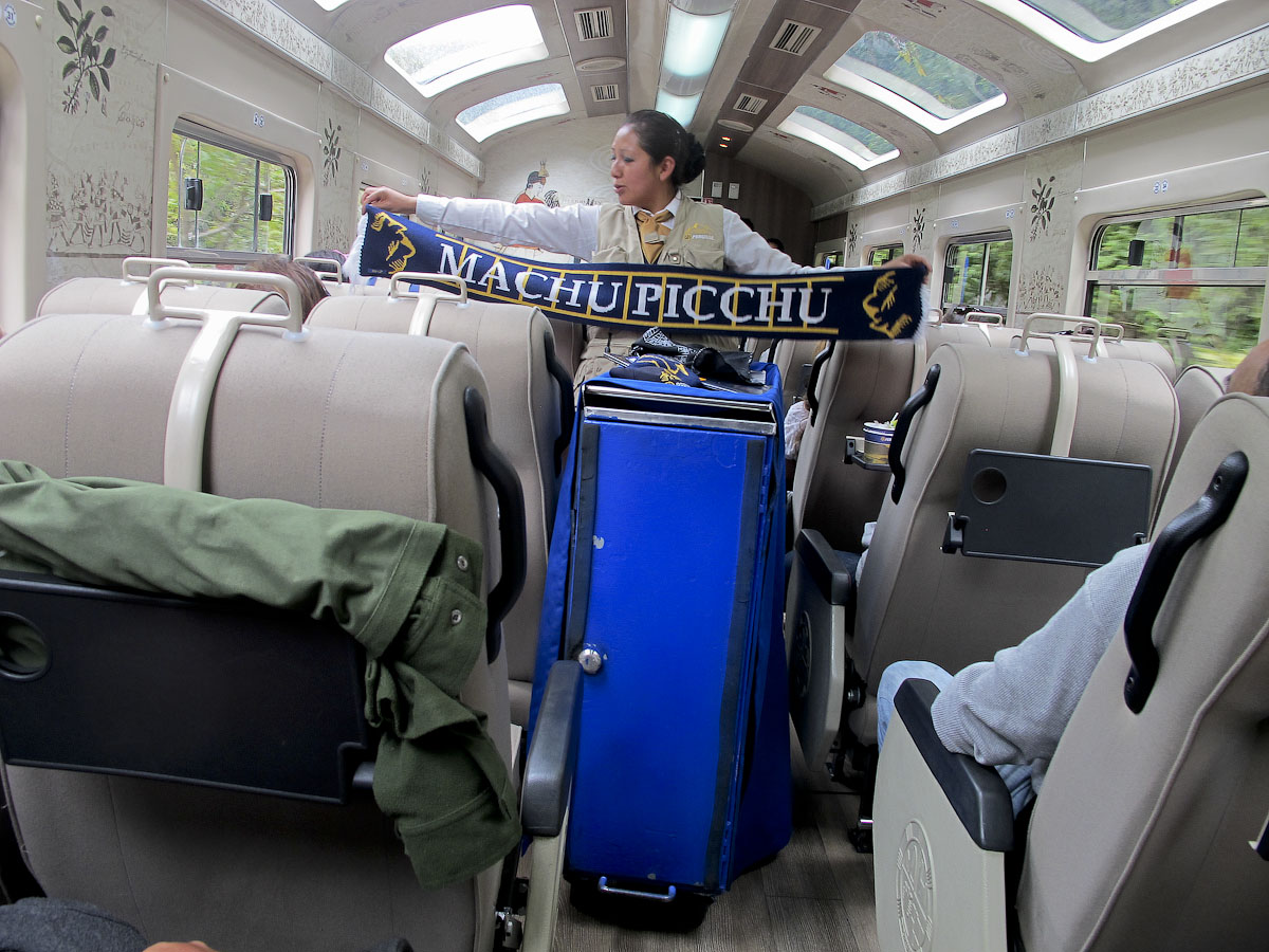 Мачу Микчу находится недалеко от Куско, но доехать туда можно только на поезде. Поезд идет медленно и поездка только в одну сторону занимает три часа. в дороге один раз кормят и можно купить всевозможное бухло. Кроме этого работает выездной "дьюти фри" с консумацией в легкой форме. Обычно предлагают свитеры, шарфы и прочее из шерсти ламы или альпаки.