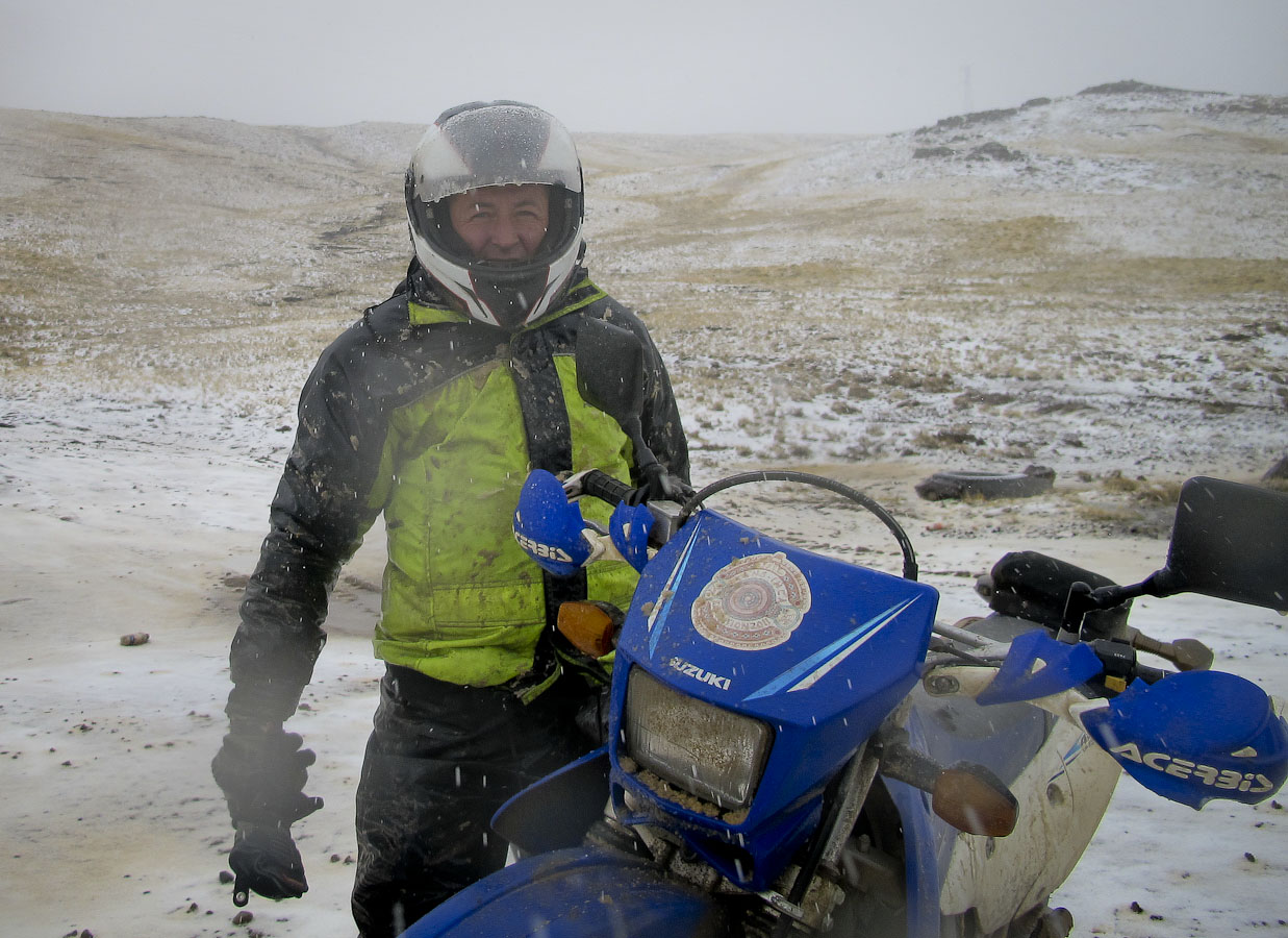 Учиться по ходу путешествия безыдейно, возьмите несколько уроков в эндуро-школе заранее. В прокате встречаются разные модели мотоциклов, нам достались Сузуки DR650 и DRZ400. То что нужно. Дорога может пролегать через перевалы и даже плоскогорья на высоте около 5000 м. Здесь идет снег и тяжело дышать.